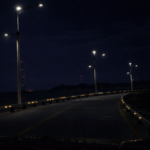 가드레일 및 도로 경계부에 부착하여 야간 주행 시 차량 운전자에게 도로 진행 방향을 명확히 알려주는 고휘도 재귀반사 안전표지.
