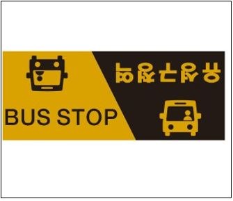 버스정류장 연석에 부착하여 보행자와 차량 운전자에게 정류장 위치를 알리는 재귀반사 안전표지.